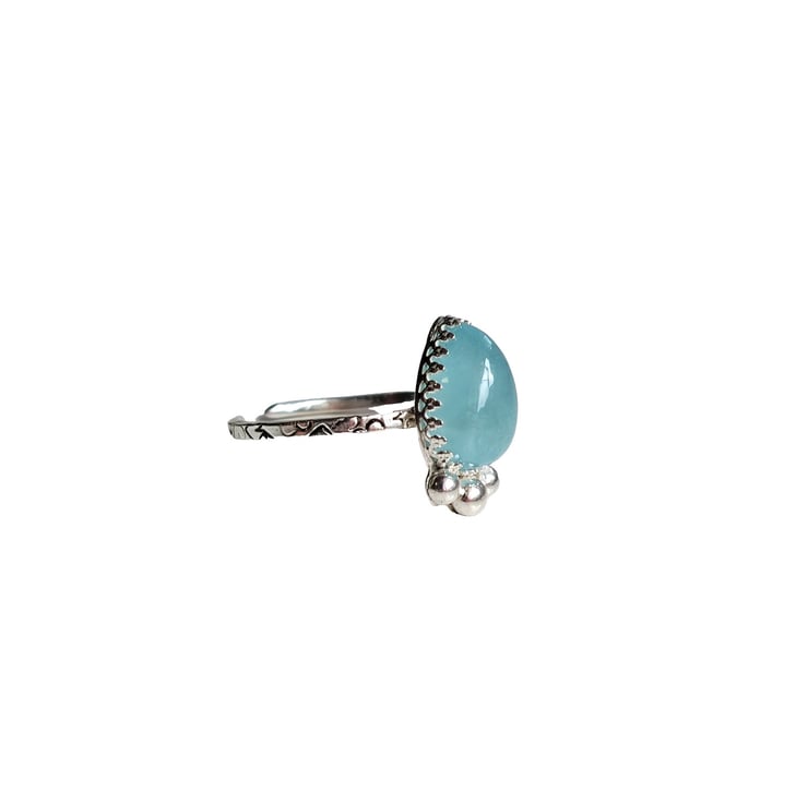 Handcrafted Stacker Ring in .925 Sterling Silver with a teardrop shaped piece of Aquamarine Gemstone