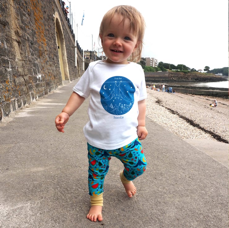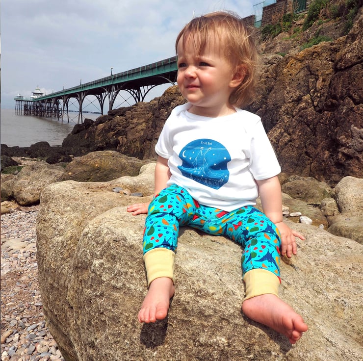 Can be layered up in winter months or keep your baby cool in the summer. Eco-friendly inks and organic fair wear cotton ensures that these products are super soft for your baby and high quality. The leggings are made from organic cotton with stretchy organic cotton cuffs and feature a repeat pattern of hanging bat and some fun colourful fruit, a perfect gift set for a new baby, a christening or even a first birthday party. Perfect for any animal loving parents.