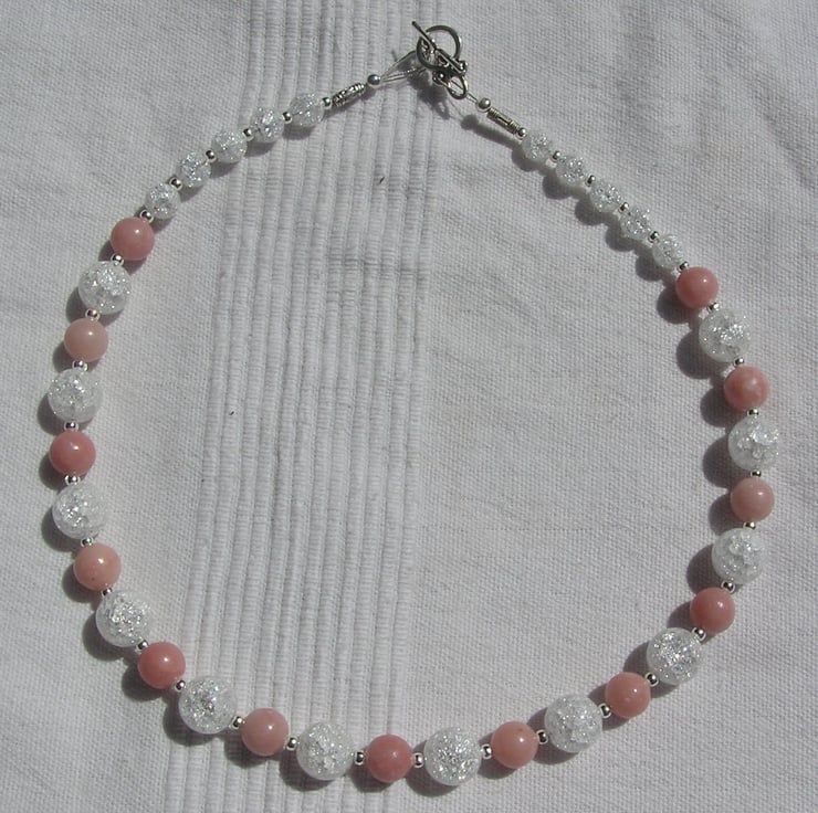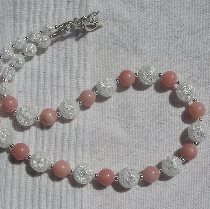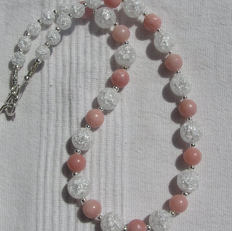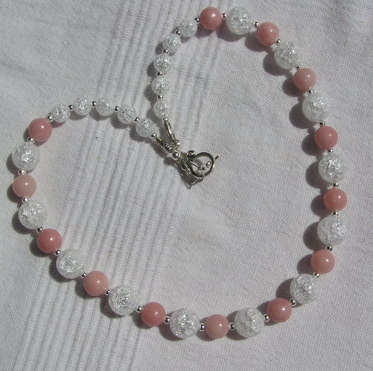 This Stunning Sumptuous Necklace is made from alternating Pink Opal and Crackled Clear Quartz chunky round beads and for that added extra sparkle tiny Silver spacer beads - a Gorgeous Soft combination that will look stunning either worn casually or with something more Elegant for a Special Evening out