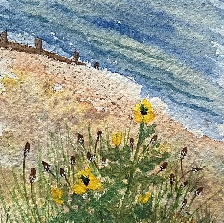 This is part of my art project, Shore and Sea, which I’m documenting on my Instagram account. These plants, yellow horned poppy and sea plantain, grow on my local beach.