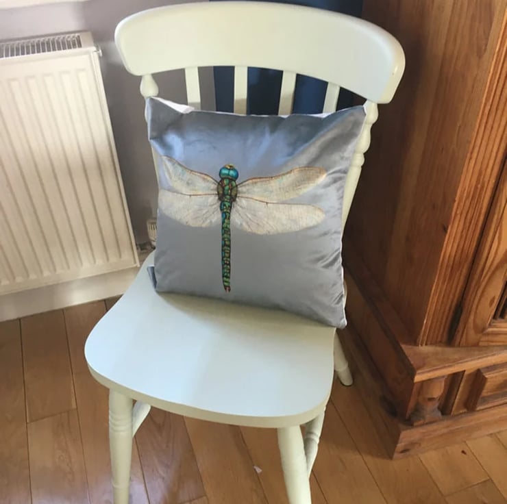 Front is Grey Velvet Dragon fly, Back plain grey velvet with hidden zip.