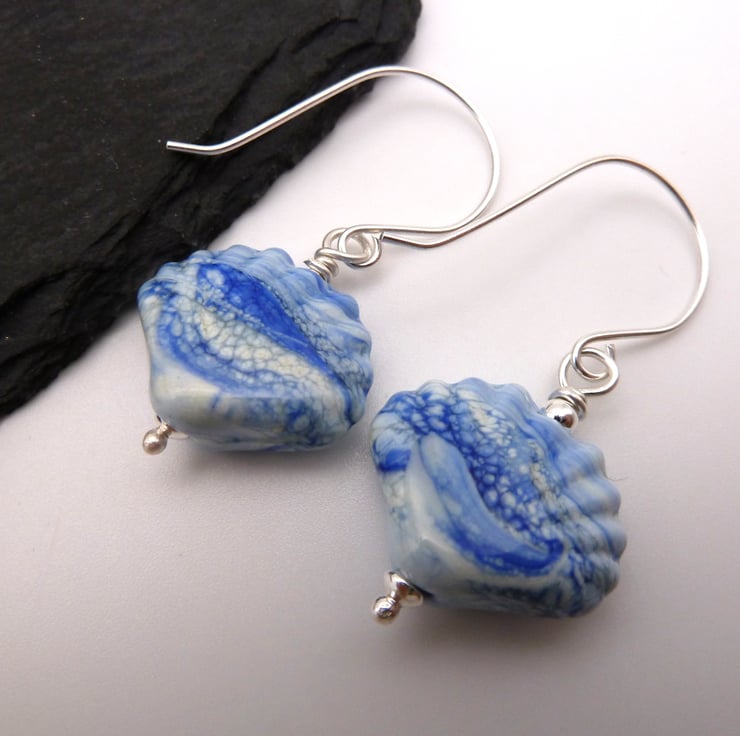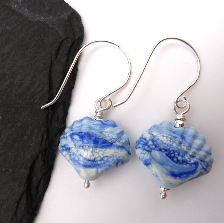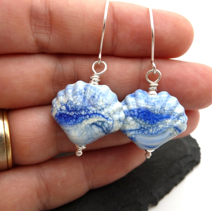 The beads have been handmade by me using blue glass, they have been shaped into sea shells.