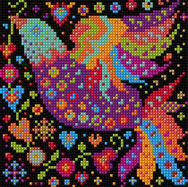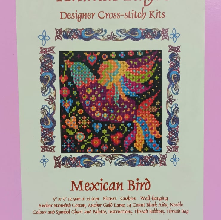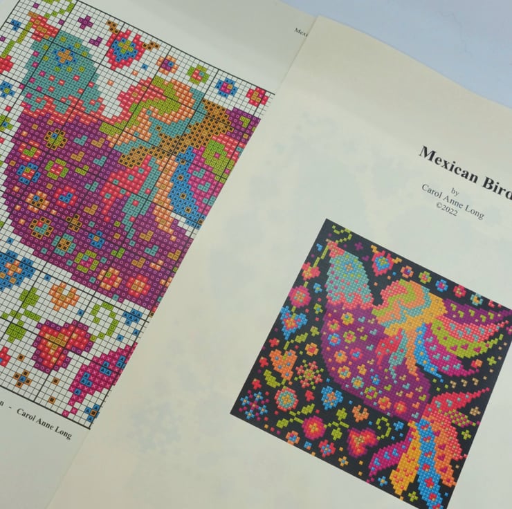 Beautiful vibrant Mexican Folk Art Bird Counted cross-stitch design to make.