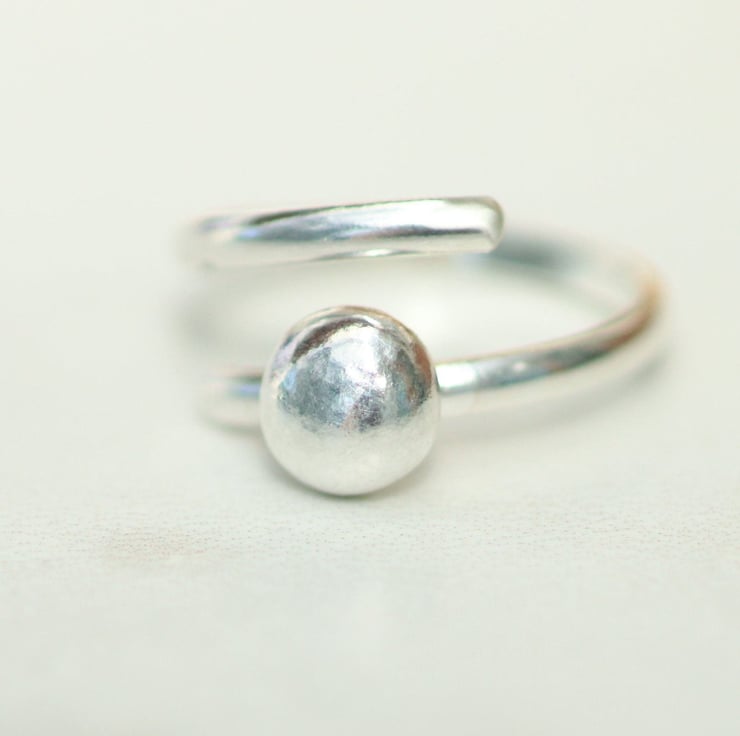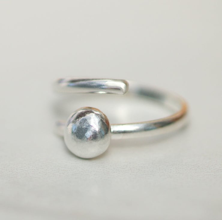 Sterling silver pebble ring, adjustable band with a silver pebble detail.