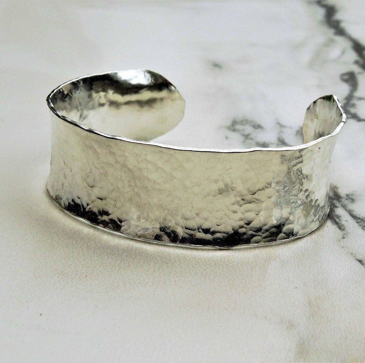 Hammered cuff bangle, silver cuff bracelet. A beautiful hammered cuff bangle in sterling silver. This bangle has a lovely hammered texture, which shines in the light and fits comfortably on your wrist.