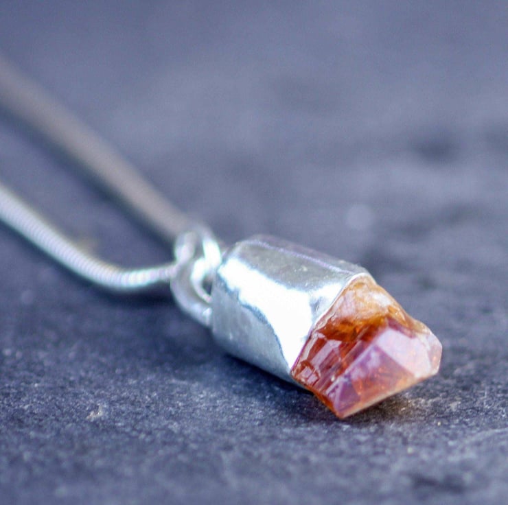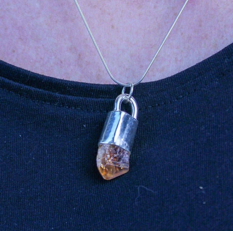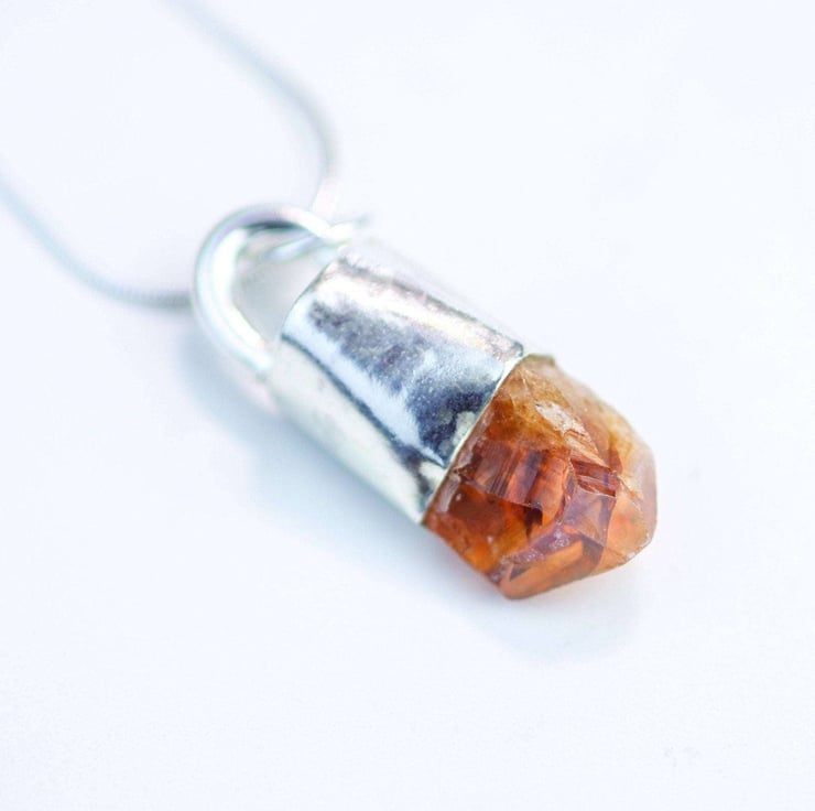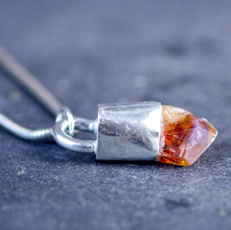Raw citrine crystal necklace - Raw citrine gemstone set in a complete sterling silver setting, creating a beautiful talisman style necklace.
