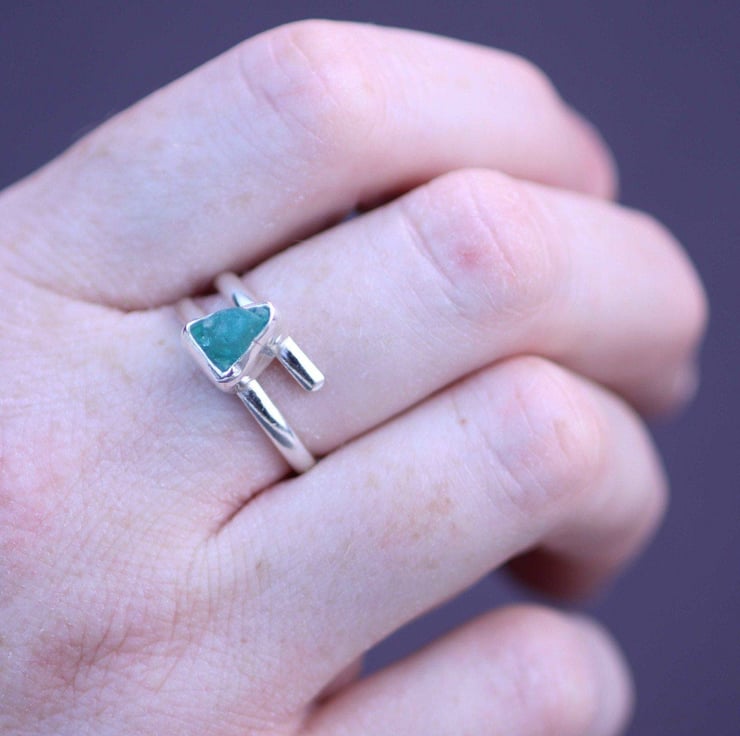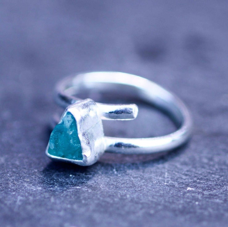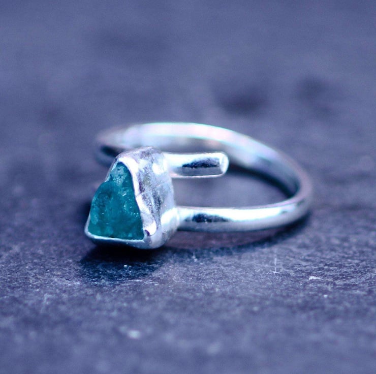 Raw green gemstone ring - Raw apatite gemstone, set in sterling silver on an adjustable band.