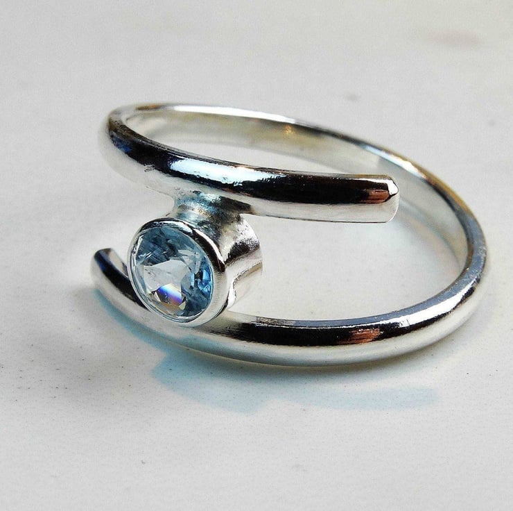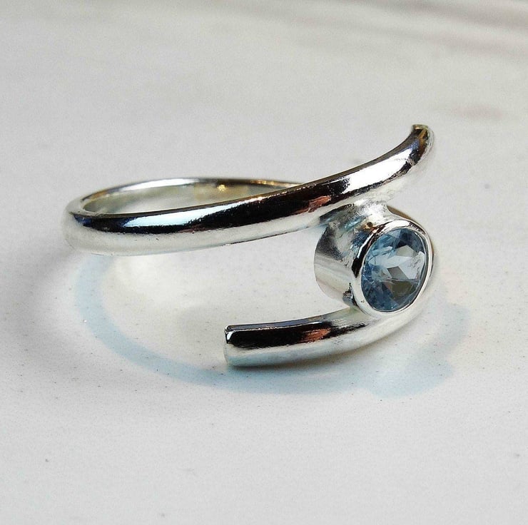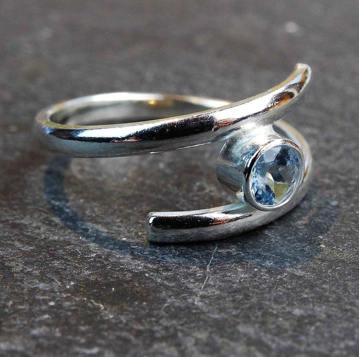 Aquamarine ring - March birthstone - Aquamarine birthstone set in sterling silver. Fully adjustable to fit any ring size. The ring features a proud silver setting lifting the stone above the band.