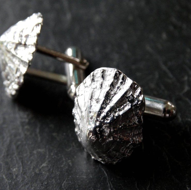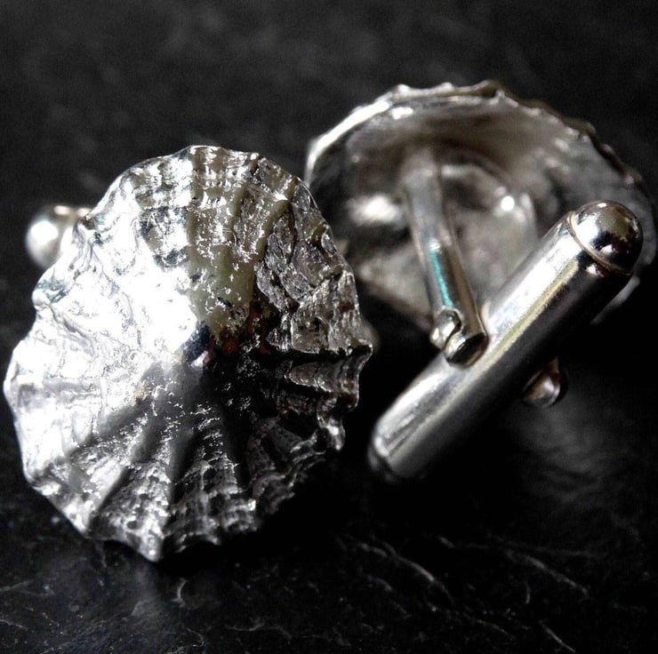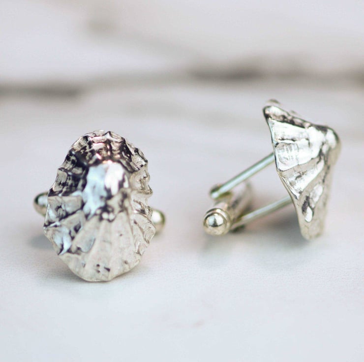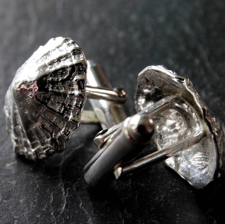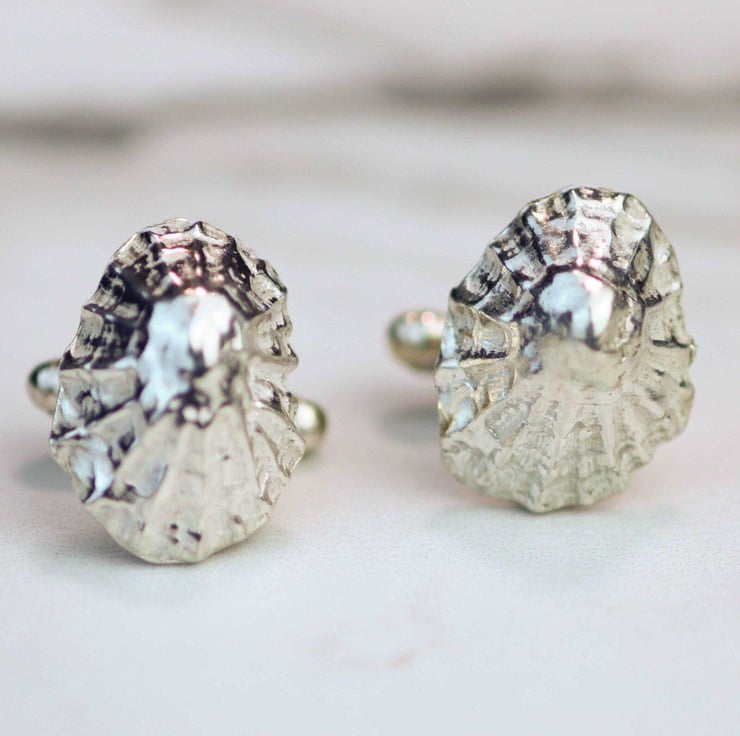 Sterling silver, limpet shell cuff links, cast from a real shell, handpicked from a Cornish beach.