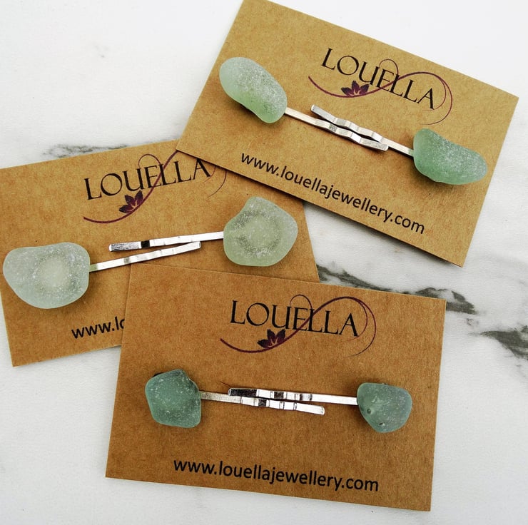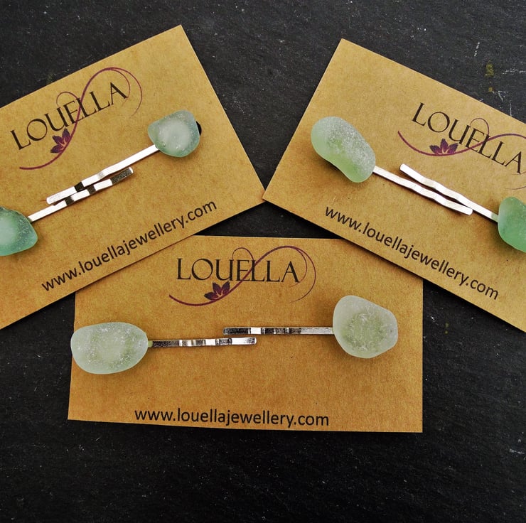 Beautiful turquoise sea glass hair slides, this unique sea glass jewellery hair grips -makes a perfect stocking filler, Christmas gift.