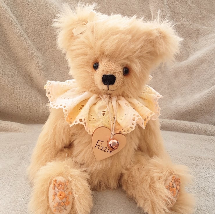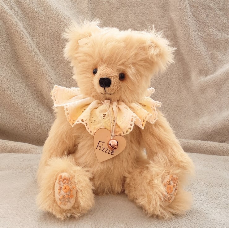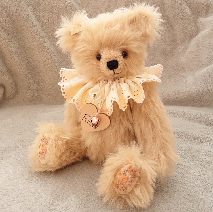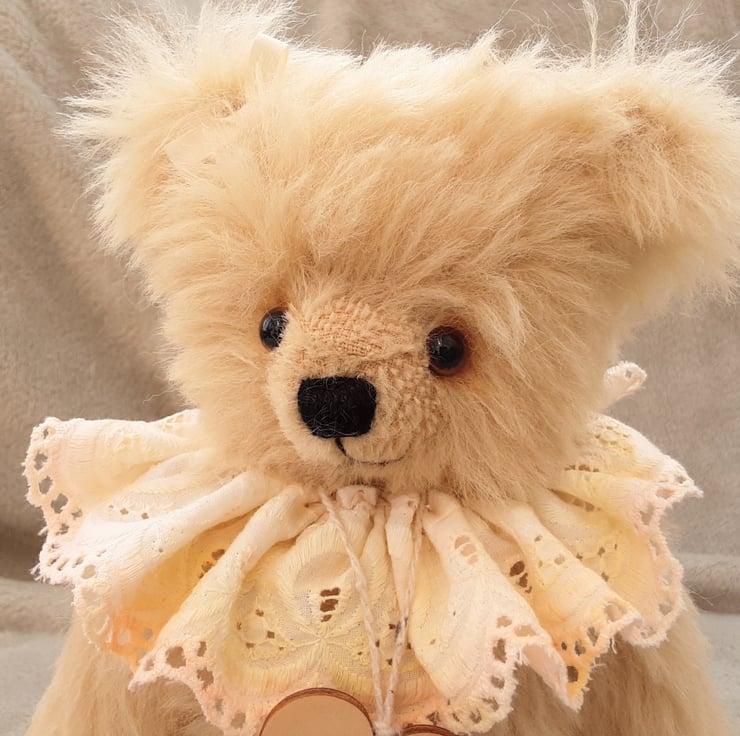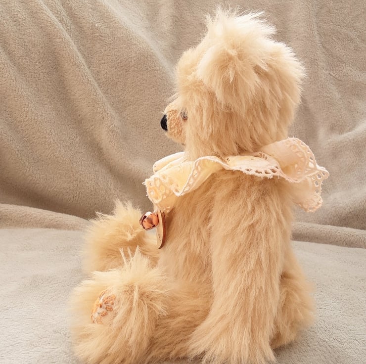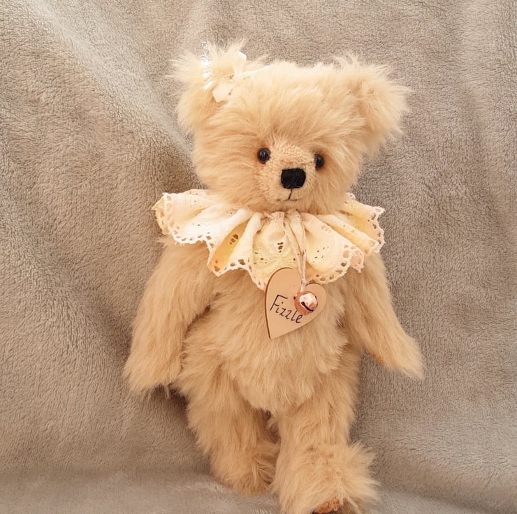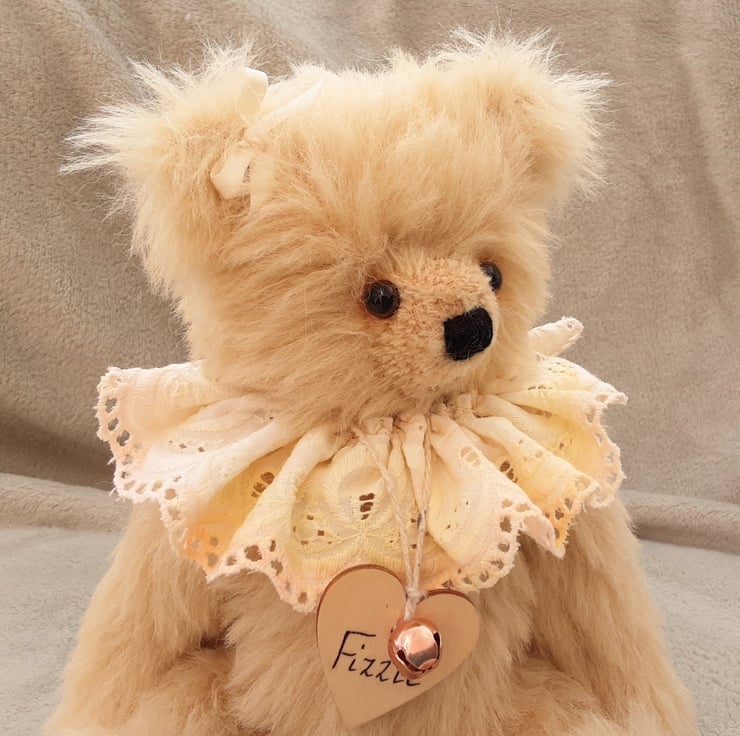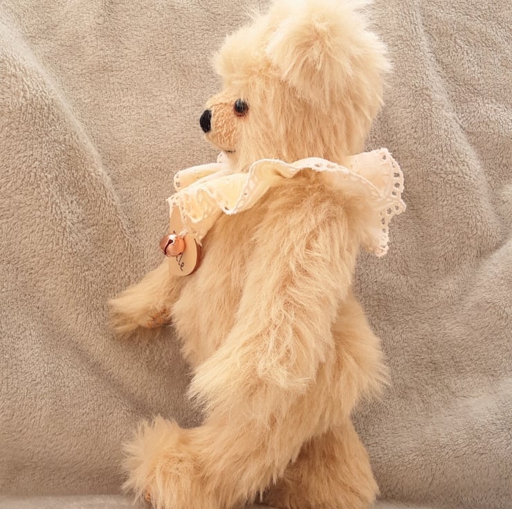 Meet Frizzle, a gorgeous collectable bear handmade from luxury alpaca mohair in ivory and standing at approx 11.5 inches.