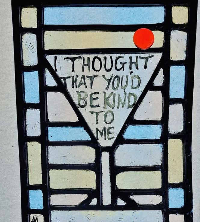 This is one of the panels from 'Amy's Late Night Bar of Bad Decisions' - a little shot of lyrics in a cocktail glass