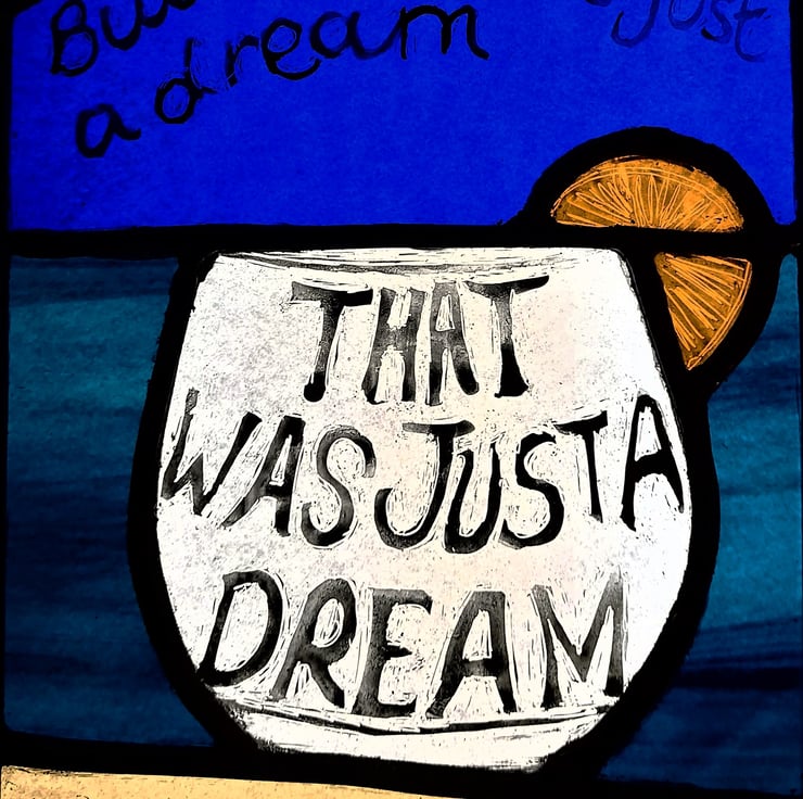 One of my panels from Amy's Late Night Bar of Bad Decisions - a little shot of song lyrics in a cocktail glass.