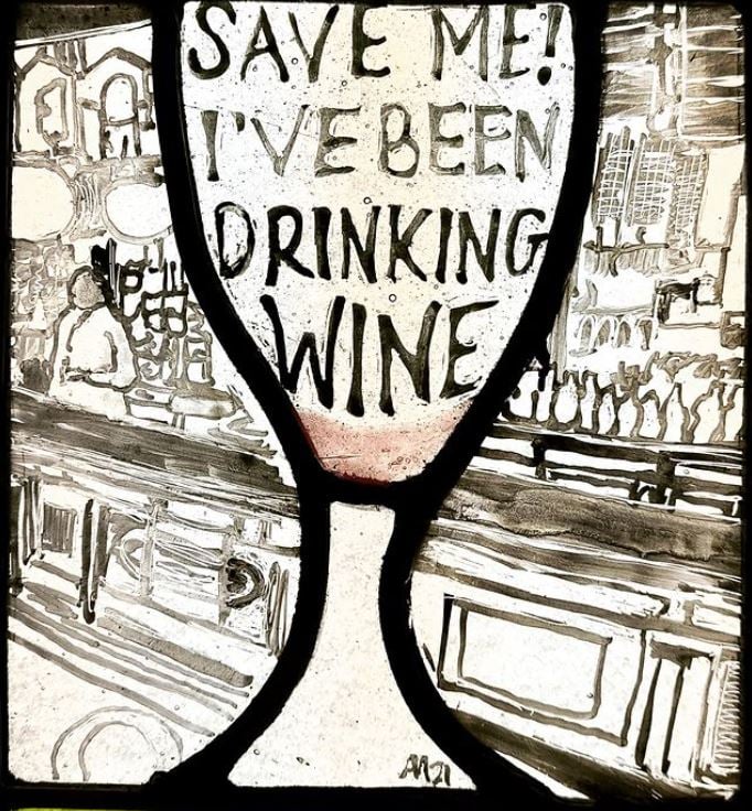 This wine glass is full of lyrics from the 2 Door Cinema song Bad Decisions.