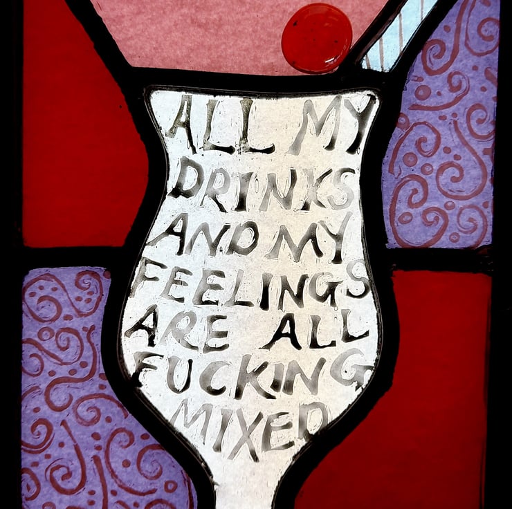 This is one of the panels from 'Amy's Late Night Bar of Bad Decisions' - a little shot of lyrics in a cocktail glass