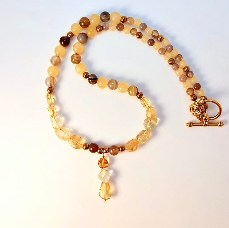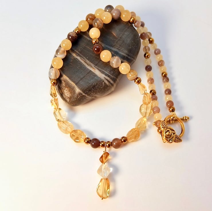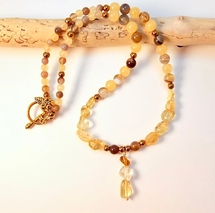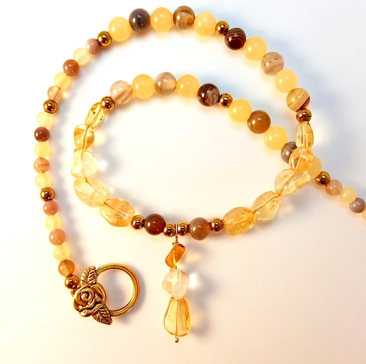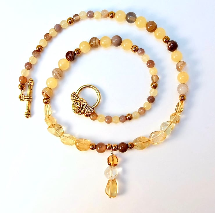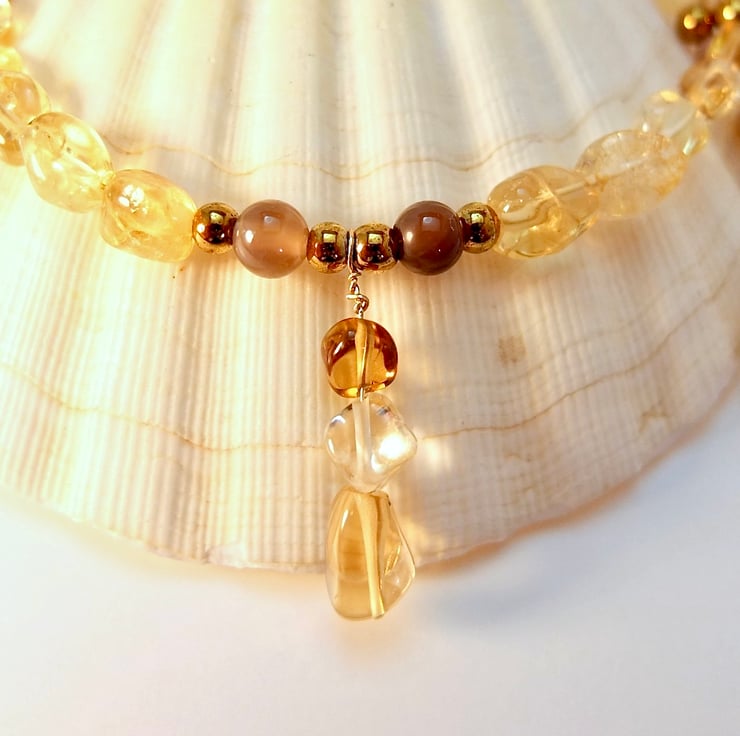 I have embellished the necklace with 4mm golden Hematite to bring out the colour od the Citrine and Ambronite and add shine.