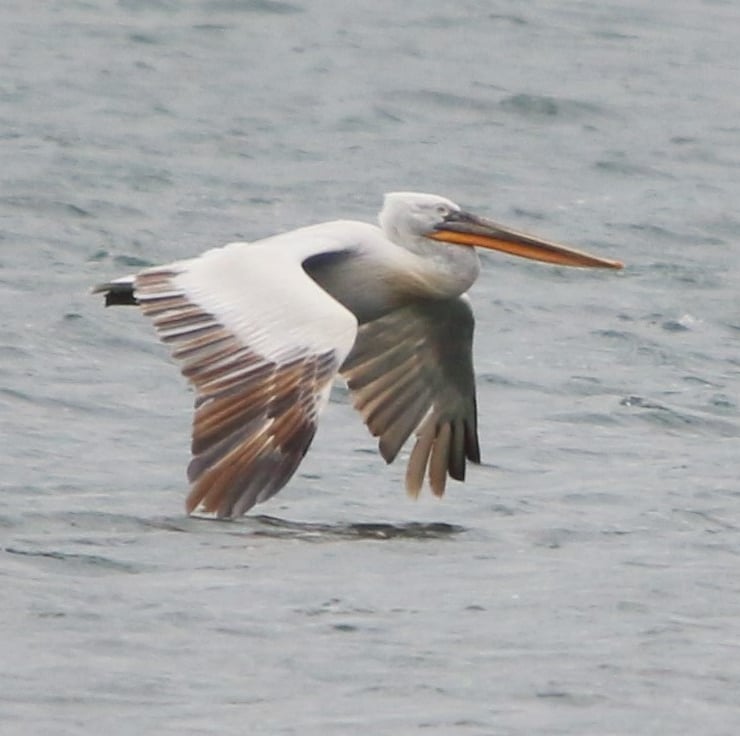 We were living in Cornwall, and tracking the flight path of the Dalmatian Pelican; so when it moved to a sand bank at Point, on the Restronguet creek, near Devoran; about 7 miles from where we lived. I went there, after work, and was lucky enough to see the Pelican in flight, and ended with a far number of photos.