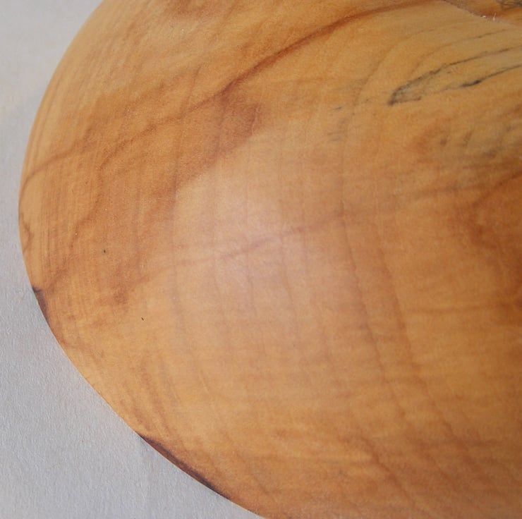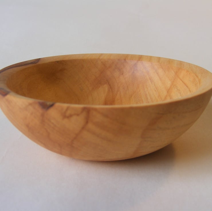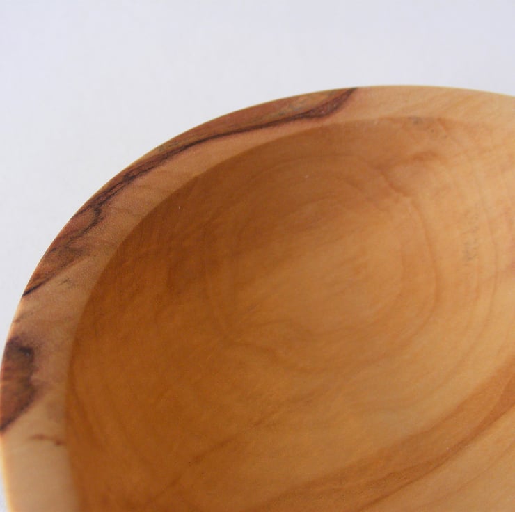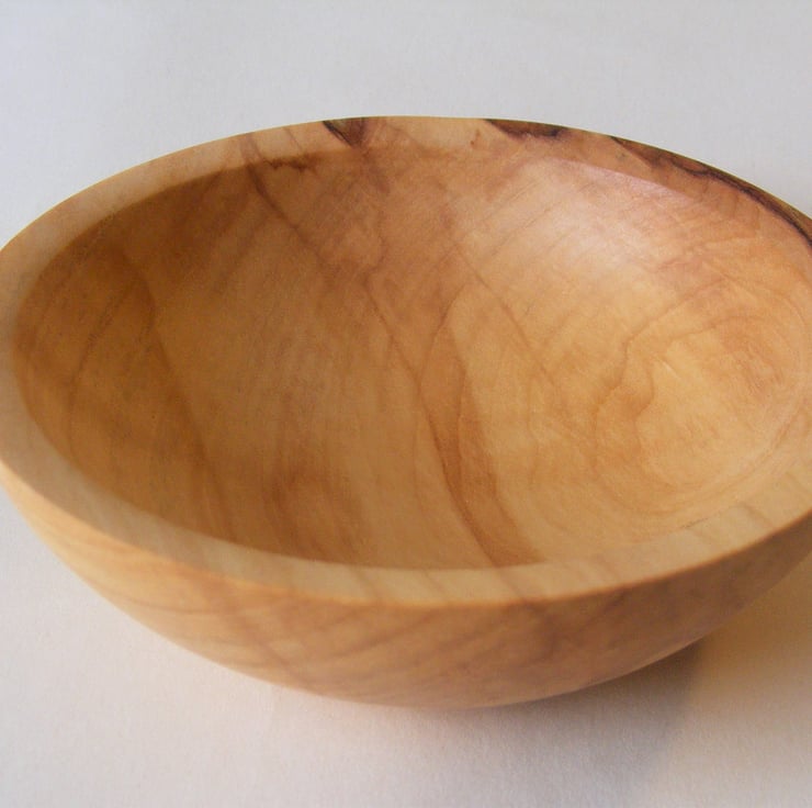 Small Spalted horse chestnut bowl. 106 x 35mm (10.6 x 3.5cm) A small Spalted Horse chestnut bowl, with a narrow base curving round to an in sloped rim. It has streaks and patches of pink hued brown with a darker area on part of the rim. It could be used for decoration, small objects or as a food, ingredient or nibbles bowl