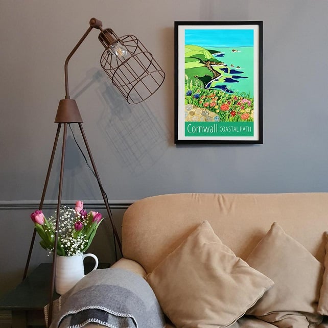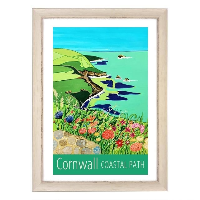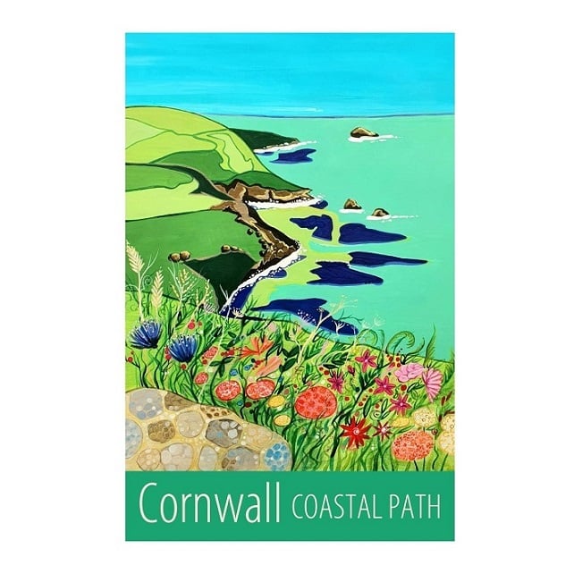 A contemporary travel poster style print of Cornwall's beautiful coastal path, near Zennor, from my own original acrylic painting.