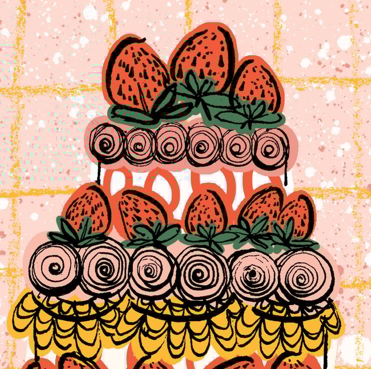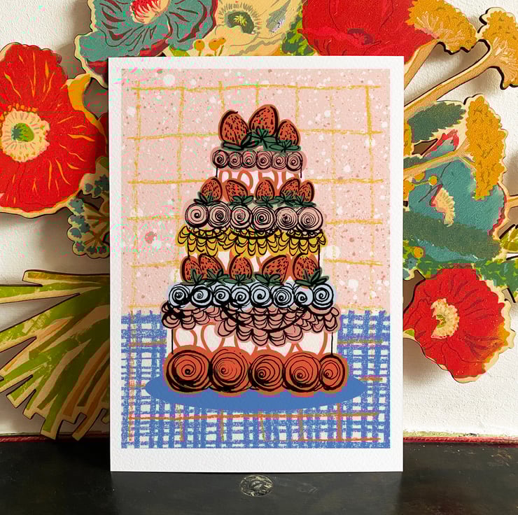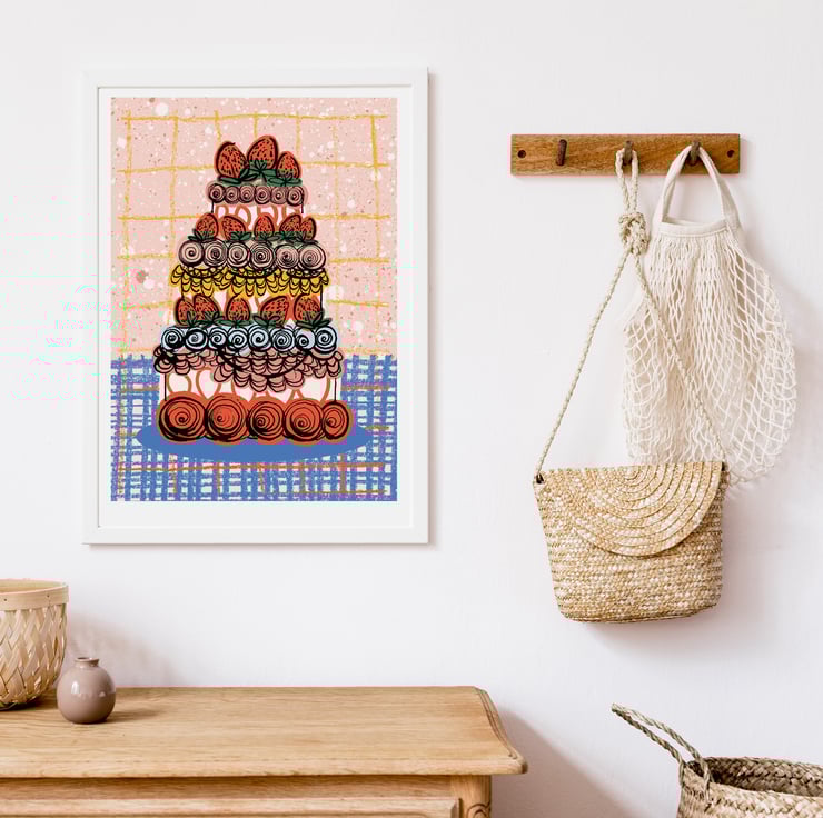 Strawberry Cake print - your daily reminder to eat more treats! Perfect wall art for a kitchen or dining area - A4 size