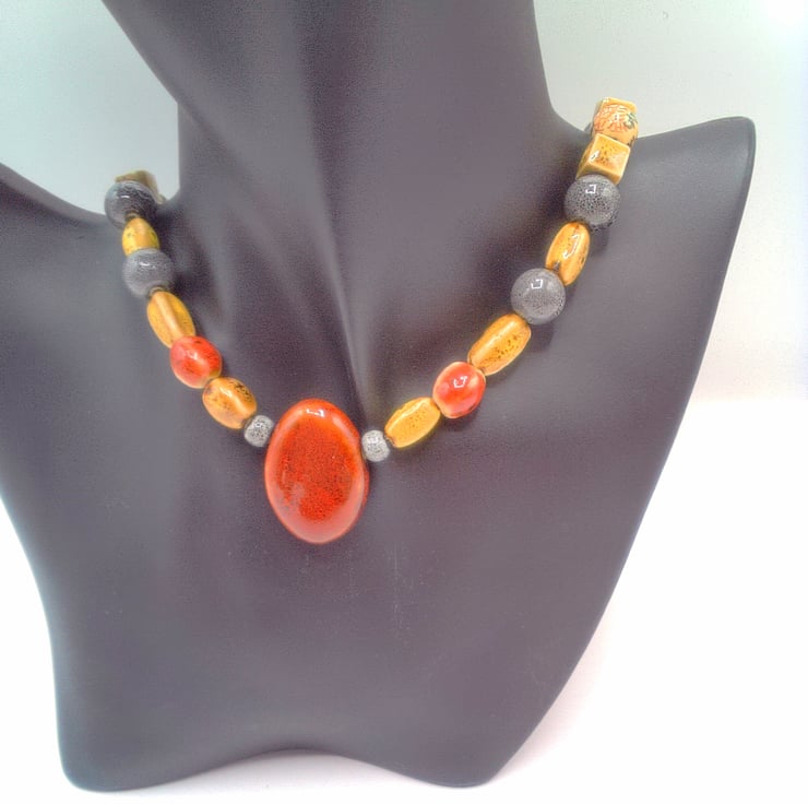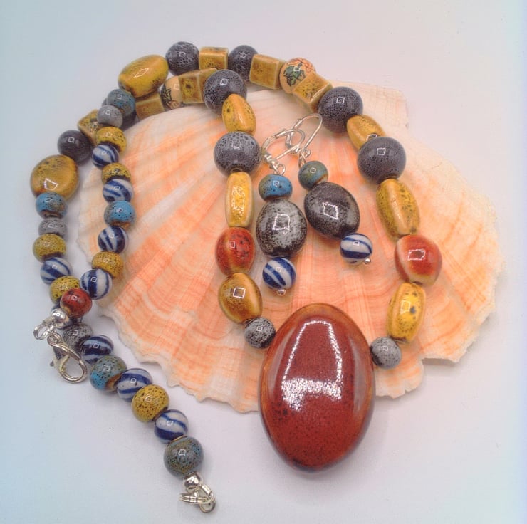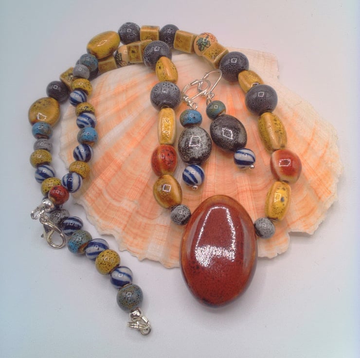 Necklace and Earrings Set in Earthy Tone Ceramic Beads, Gift for Her, Jewellery, Birthday Gift, Anniversary Gift,Gift for Her