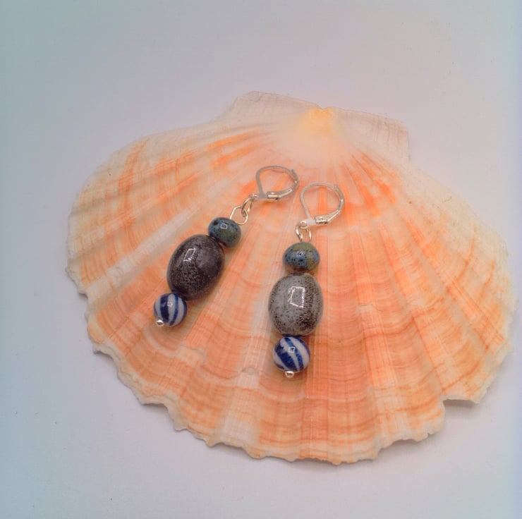 This gorgeous 2 piece jewellery set comprises a necklace and a pair of earrings made using muted earthy tone ceramic beads in a variety of sizes and shapes. It includes 12 mm, 10 mm, 8 mm and 6 mm round ceramic beads, and a mix of cube, oval and tube beads, with a stunning dark red 32 mm x 23 mm oval ceramic centre bead. The necklace is fastened using a silver plated lobster clasp and the earring are suspended on silver plated lever backs. The necklace measures 18.5 inches (47 cm) in length and the earrings have a drop of 1.5 inches (3.5 cm) from the base of the lever back. The set would make a delightful gift for a lady for a birthday, anniversary or any other special occasion. It will be dispatched wrapped in tissue paper in an organza bag and delivered by Royal Mail's first class post.
