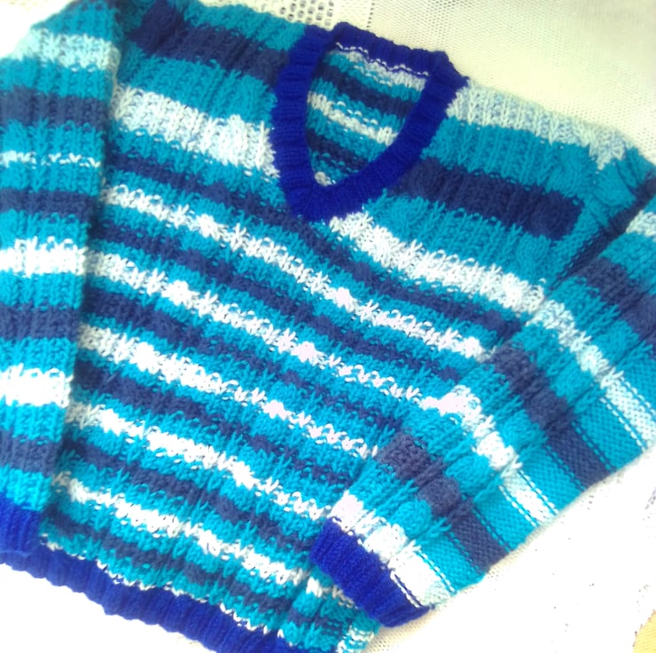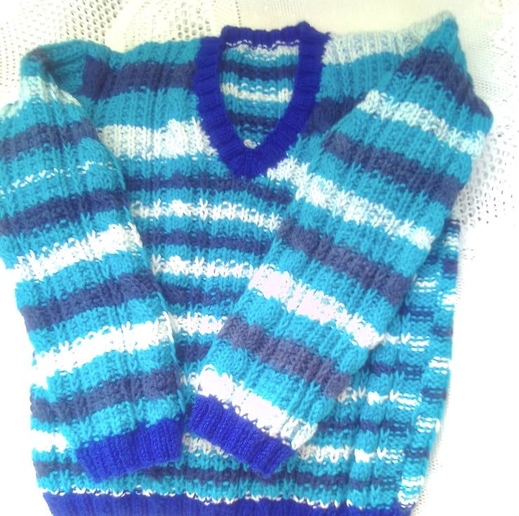 Aran Weight Variegated Blue Cabled Jumper, Hand Knitted Jumper, Winter Jumper, Children's Clothes, Gift Ideas for Children, Child's Winter Jumper, Birthday Gift, Christmas Gift, Gift Ideas for Children