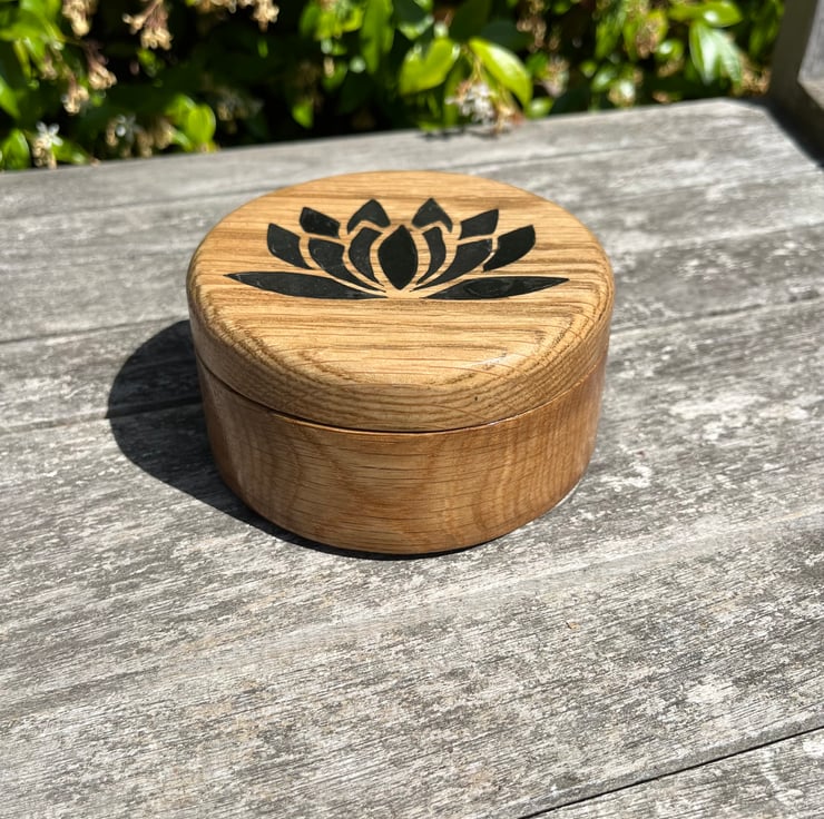 Lotus Flower Oak Jewellery - Trinket Box (WB9)