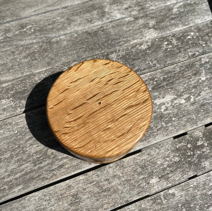 Having made a number of shaped trinket boxes in oak and walnut, I wanted to enhance the surface decoration and experimented with inlaying the top with epoxy. The pattern was cut through the box lid, inlaid, sanded, sanded & sanded and then coated with a drying oil finish, which i hope you agree, provides a very attractive and durable finish.