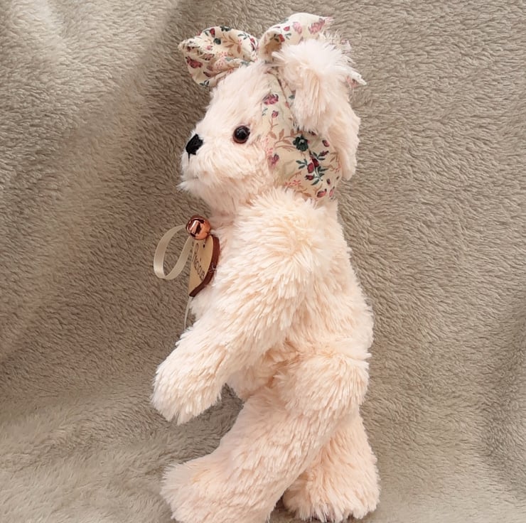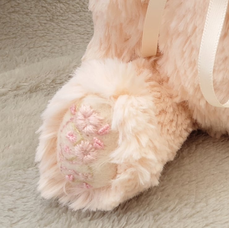 Precious has delicate hand embroidered paw pads in soft pinks.