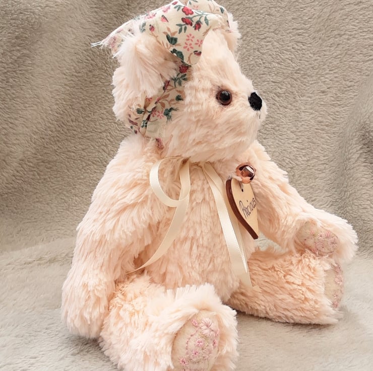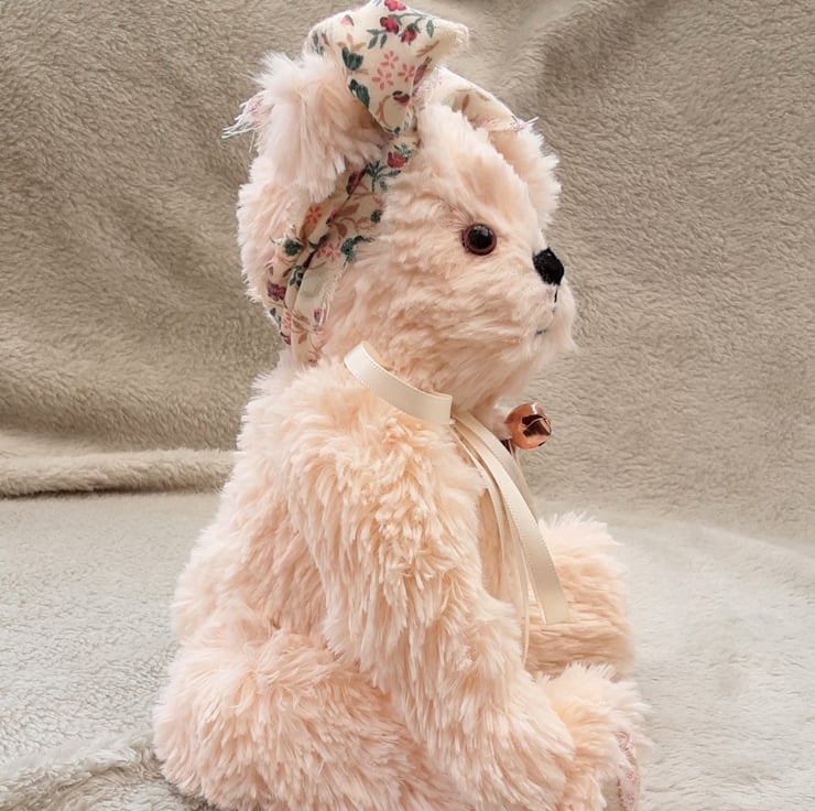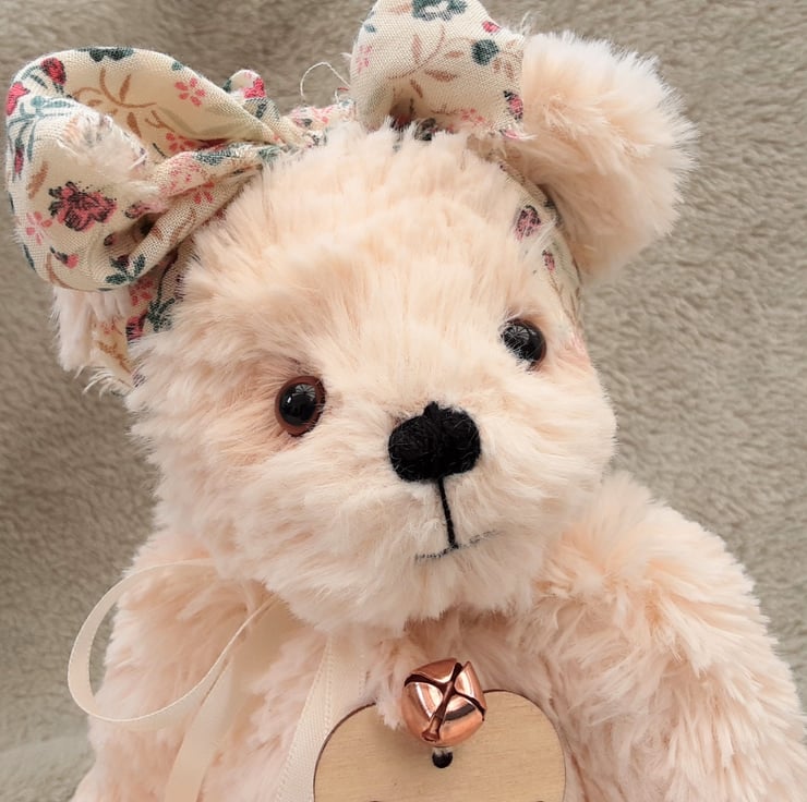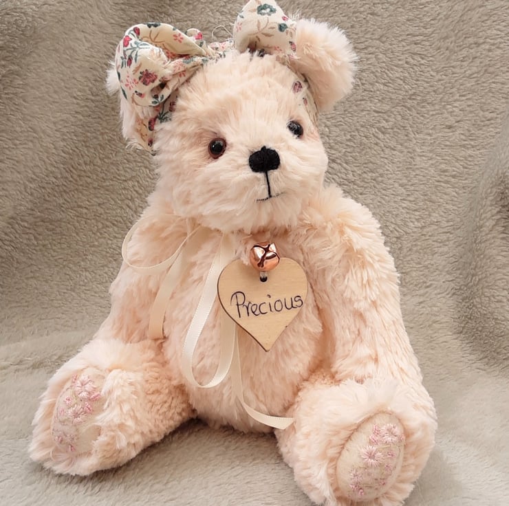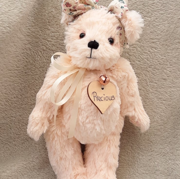 Meet Precious, a beautiful unique artist bear made from a lovely silky soft plush fur in a soft peachy pink tone.