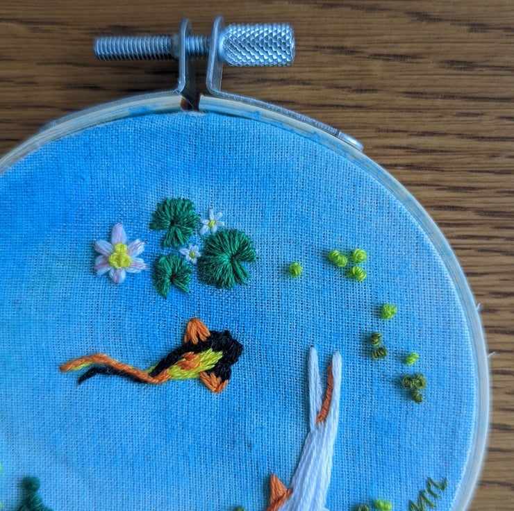 Framed in a bamboo embroidery hoop.