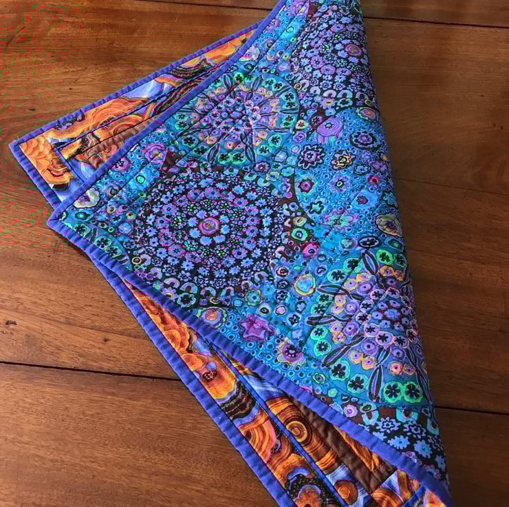 Table toppers are not only useful, they should also be beautiful. They can add a splash of colour and joy to a room. With this in mind, I choose beautiful fabrics. I hope you like them.