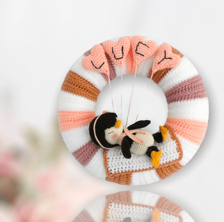 This pretty, sleepy little penguin is an ideal addition to any nursery. The wreath can be made in a wide variety of colours, and can be personalised with any name so can be for a boy or a girl.