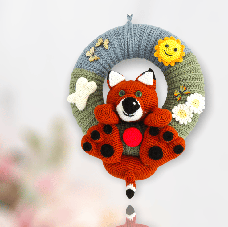 Freddy the cheeky little fox will brighten up any nursery! Surrounded by daisies and butterflies he brings his own bone and ball to play with in the sunshine.