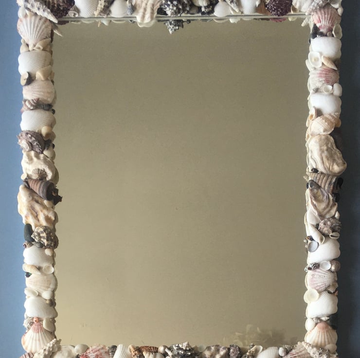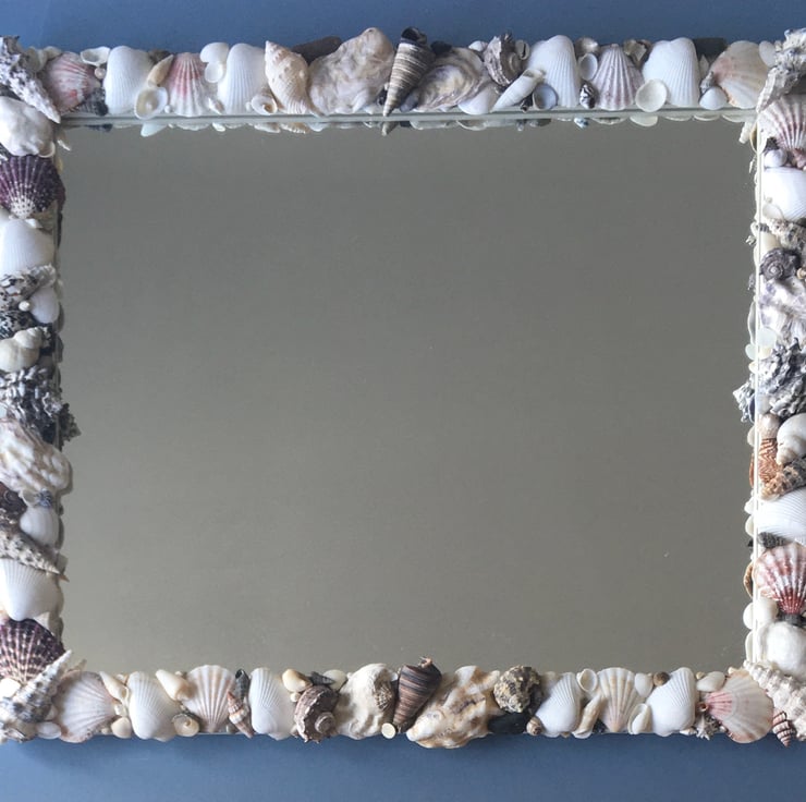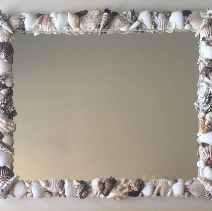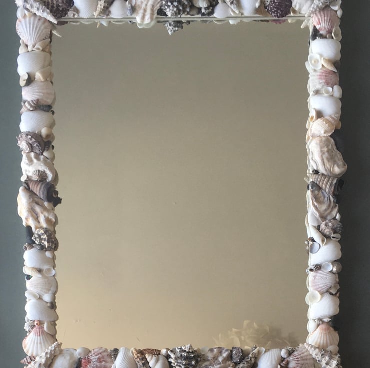 Unique and individually made handcrafted natural seashell mirror