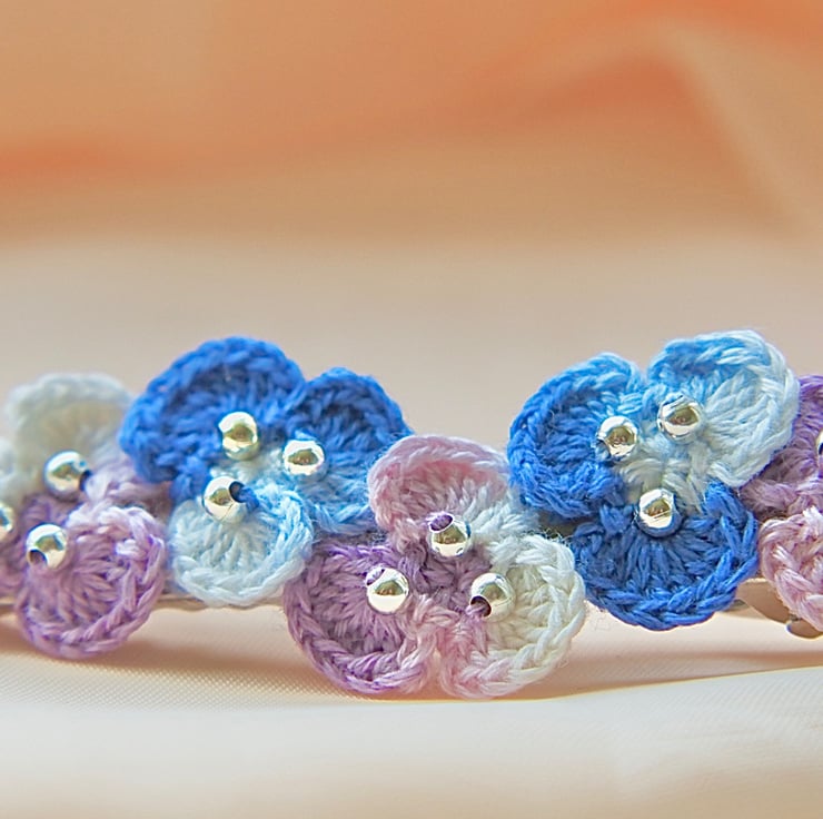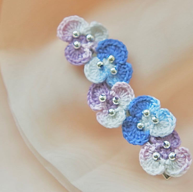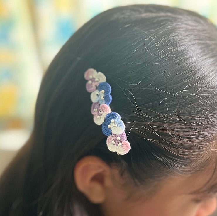 Crochet Floral hair clip made with Embroidery Threads and Alligator Hair Clip.