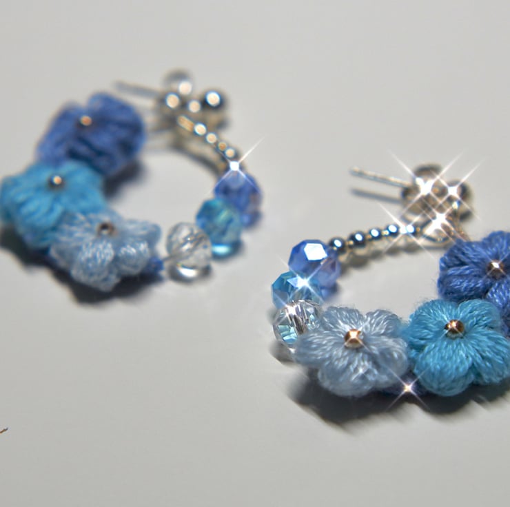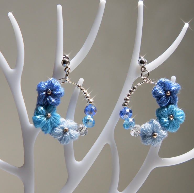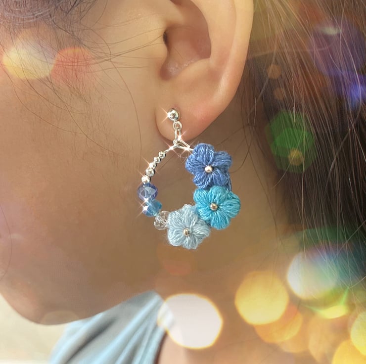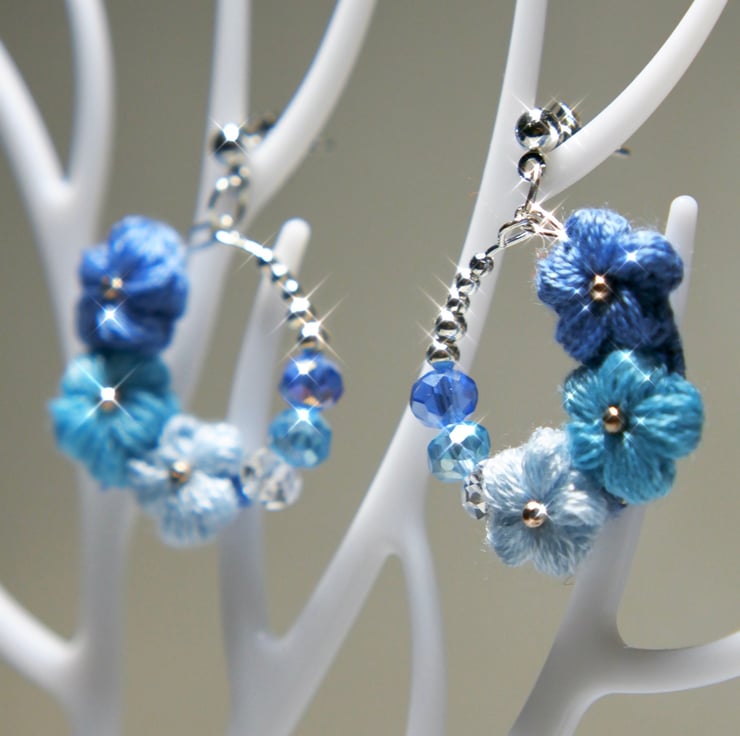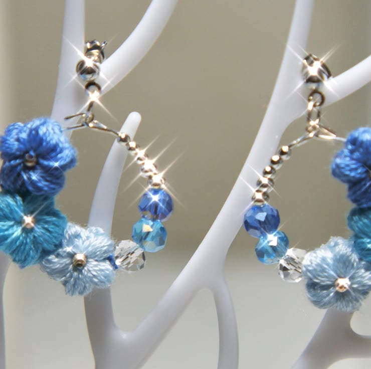 Earrings made with 6mm Crystal Glass beads and Embroidery thread .