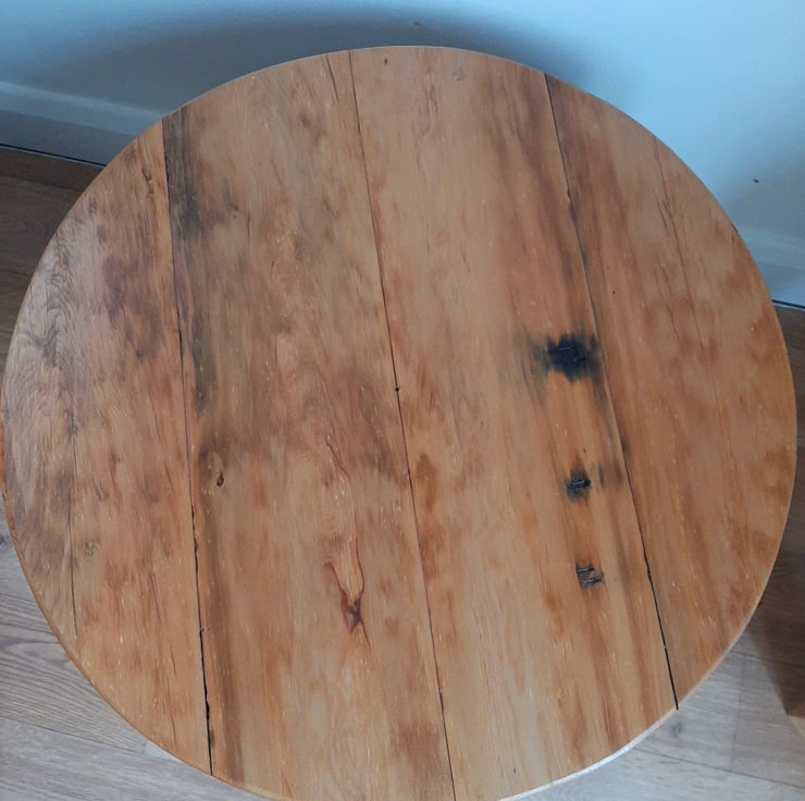 The lovely 4 cm deep wooden top is full of age and character, it has some marks in the wood which only improve the beauty, the wood is smooth to the touch, with no sharp edges.
