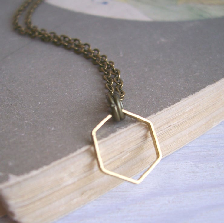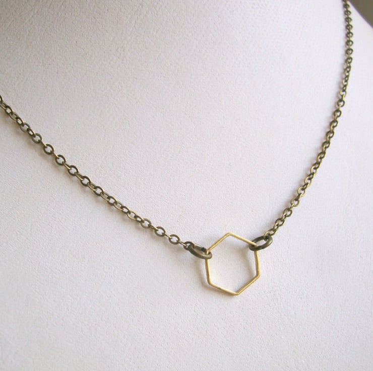 This delicate hexagon hangs on super fine chain. A beautifully simple and minimalist necklace.