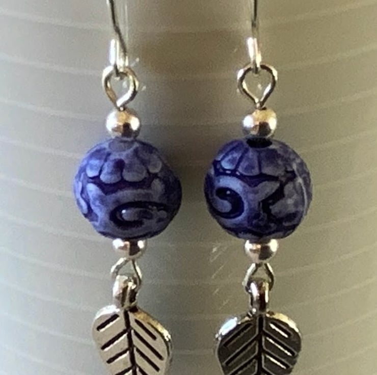 A classic design with rustic vintage charm. Denim embossed beads featuring a silver metal leaf charm. that will