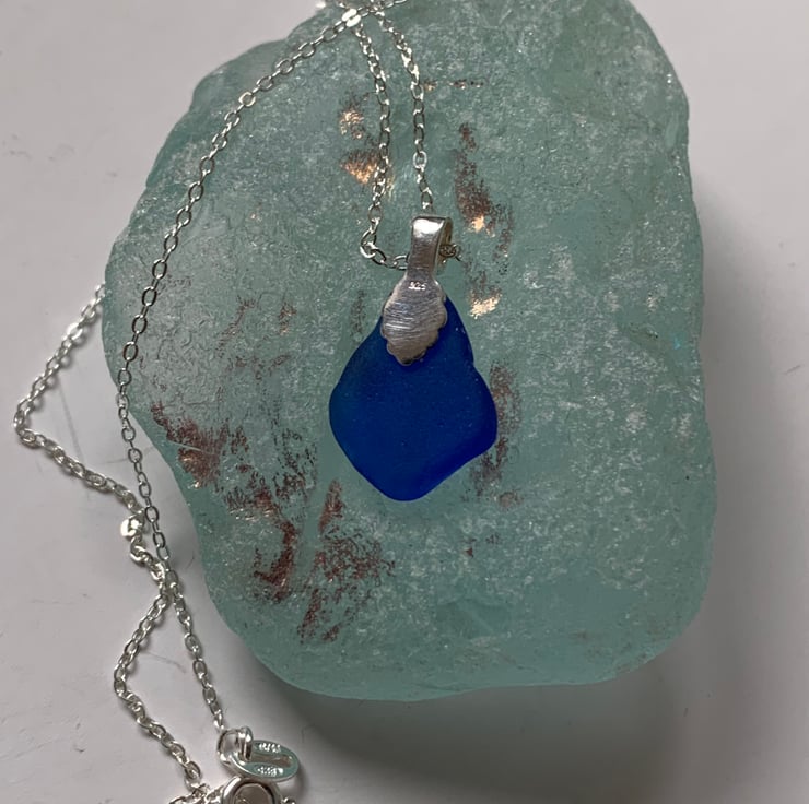 A small, but prefect kite-shaped piece of cobalt blue seaglass makes a lovely, delicate pendant attached to an 18inch Sterling silver chain. The seaglass was collected off of Withernsea beach in East Yorkshire.