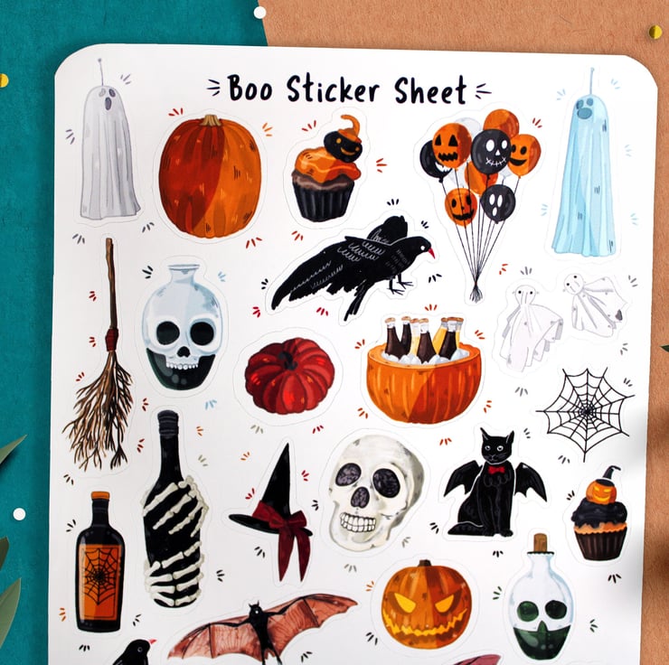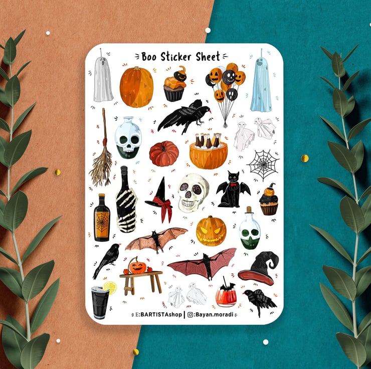 Boo! sticker sheet, Halloween Bullet journal planner stickers