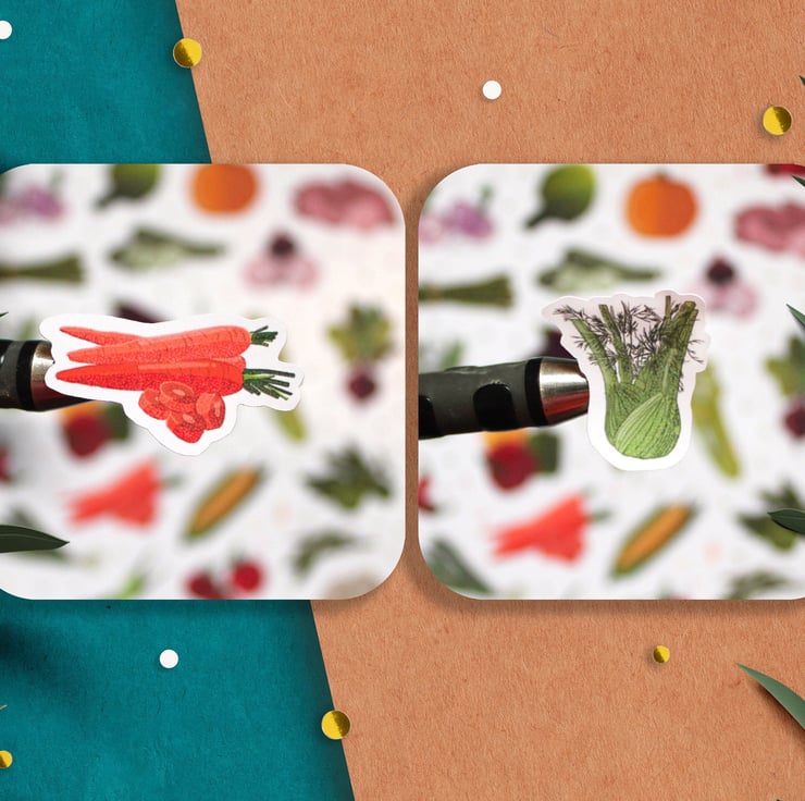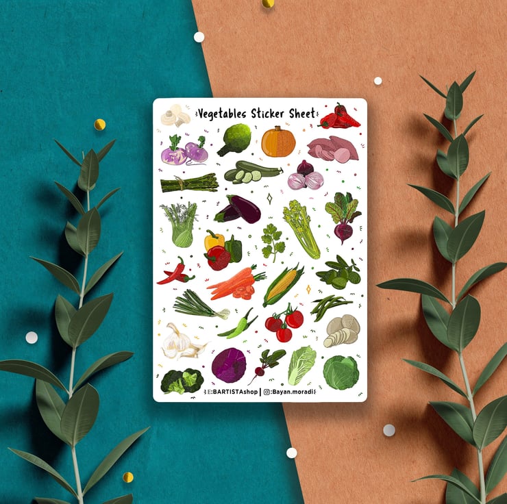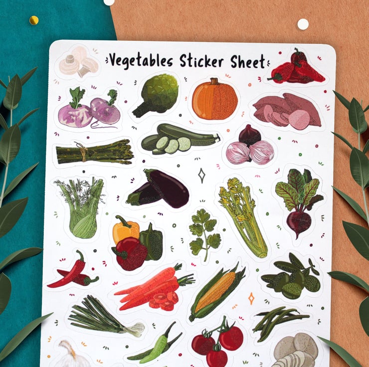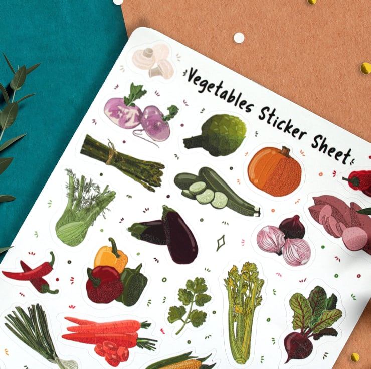 Vegetable sticker sheet, Original illustrated vegetable stickers