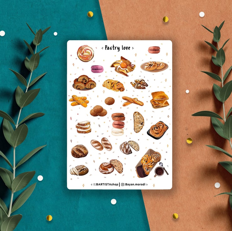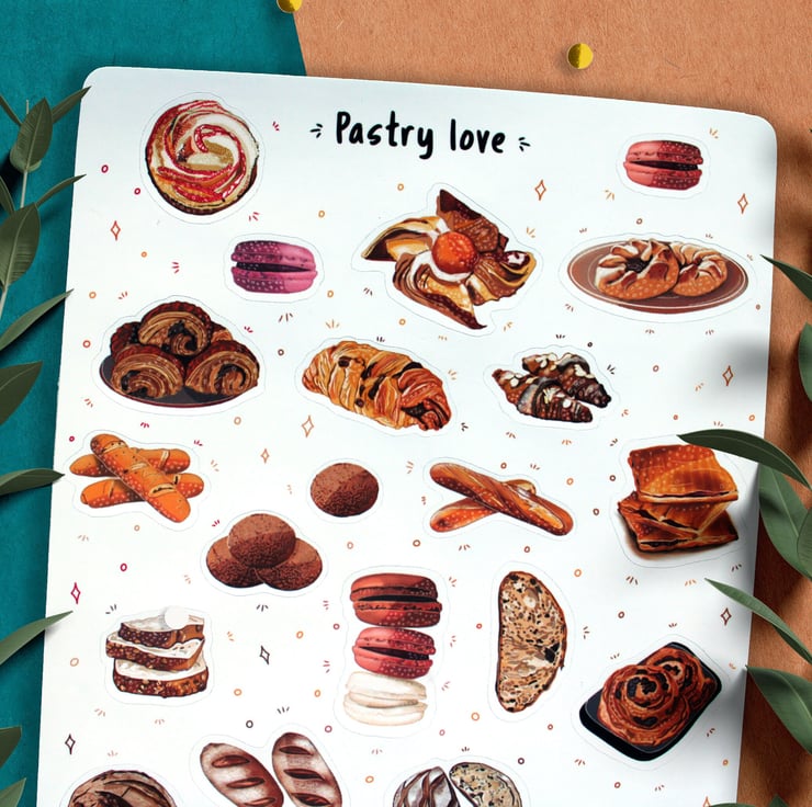 Original Illustrated Pastry love stickers, bread, and bakery stickers