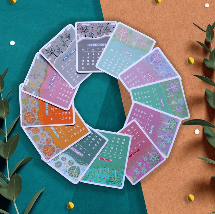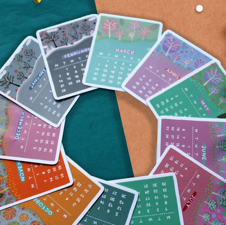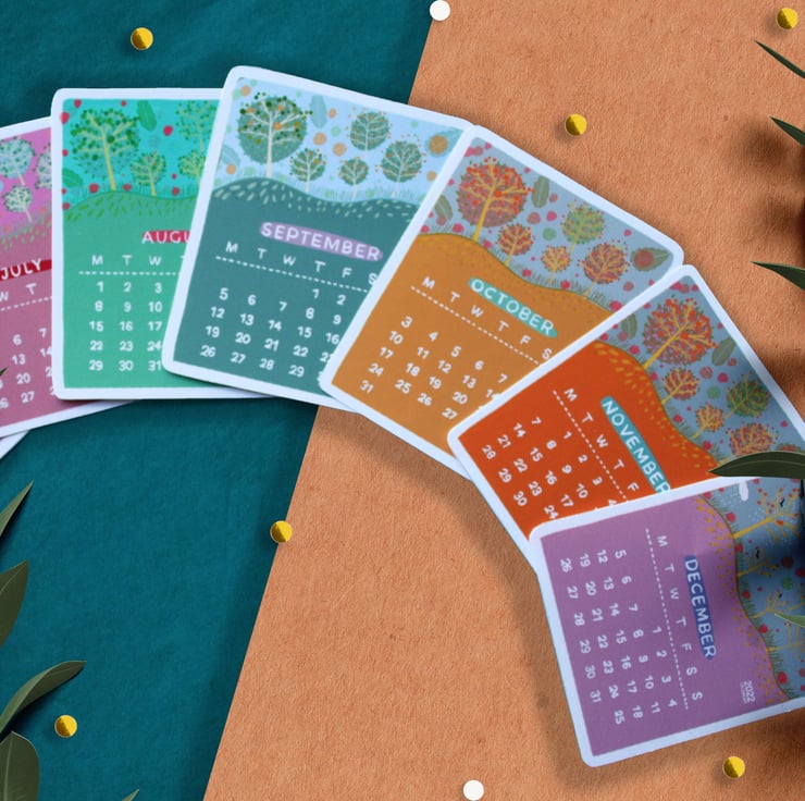 Original illustrated 2023 mini calendar stickers, decorative & functional stickers