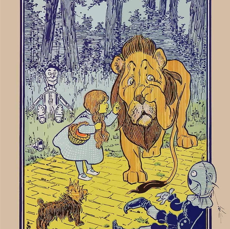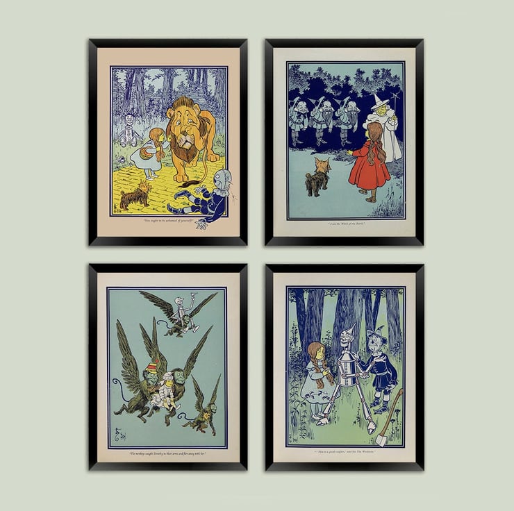 A set of prints from the original Wizard of Oz book, illustrated by W.W. Denslow.