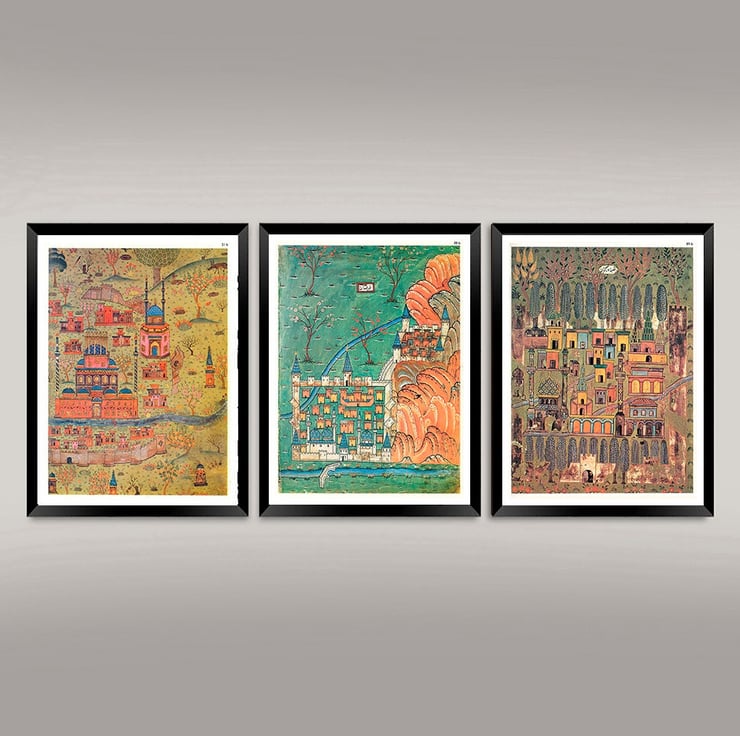 Wonderful vintage cartography illustrations by renowned polymath MatrakcNasuh, printed with light-fast inks on premium quality 220gsm matte paper.