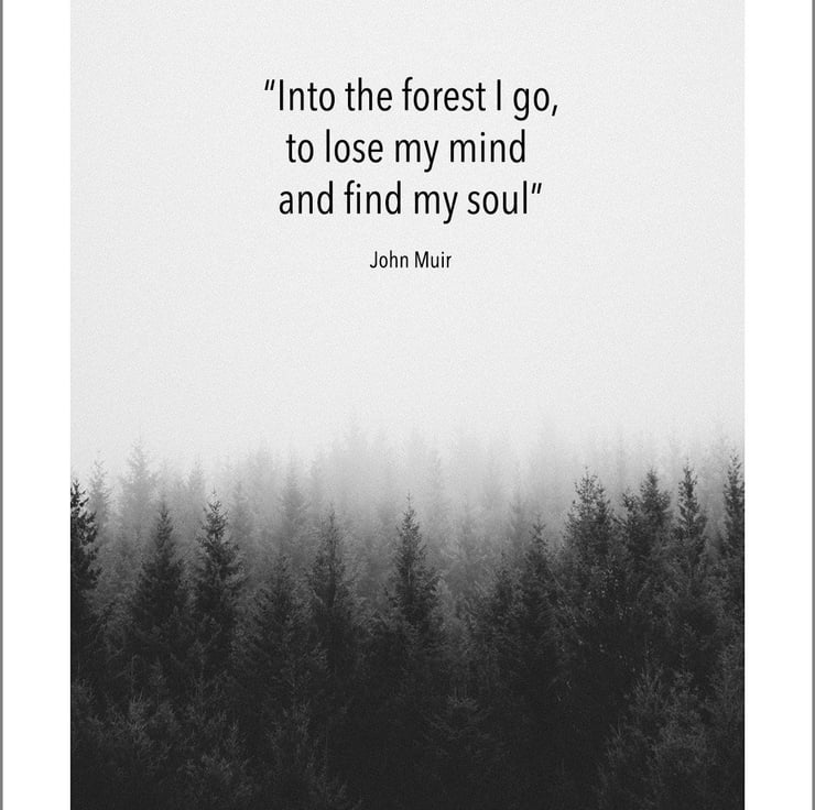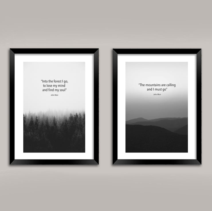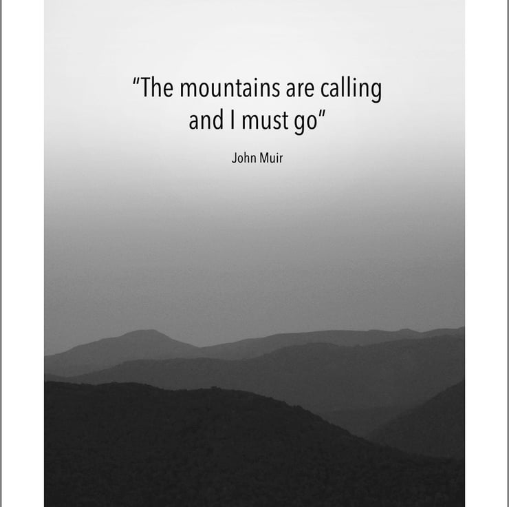 Original artwork featuring quotes by Scottish explorer and conservationist John Muir, produced with light-fast inks on premium quality 220gsm satin paper.