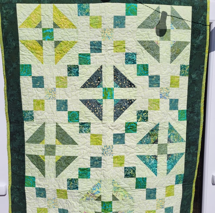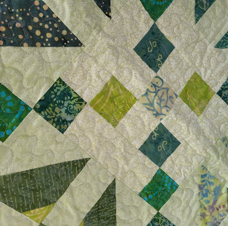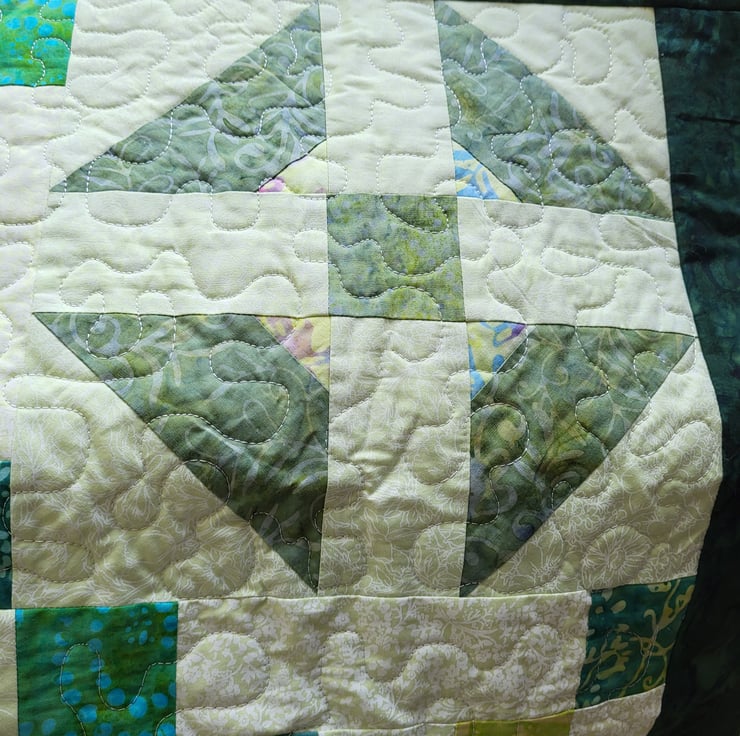 It has a Batik backing and cotton / polyester wadding and is machine quilted on a domestic machine.